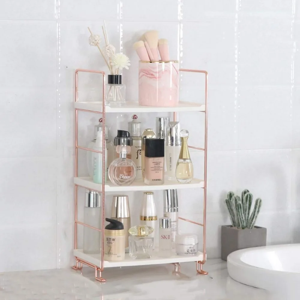 Desktop Cosmetics Storage Rack Rose Gold 2/3 Layers Bathroom Makeup Organizer Assembled Kitchen Sea