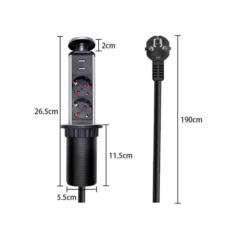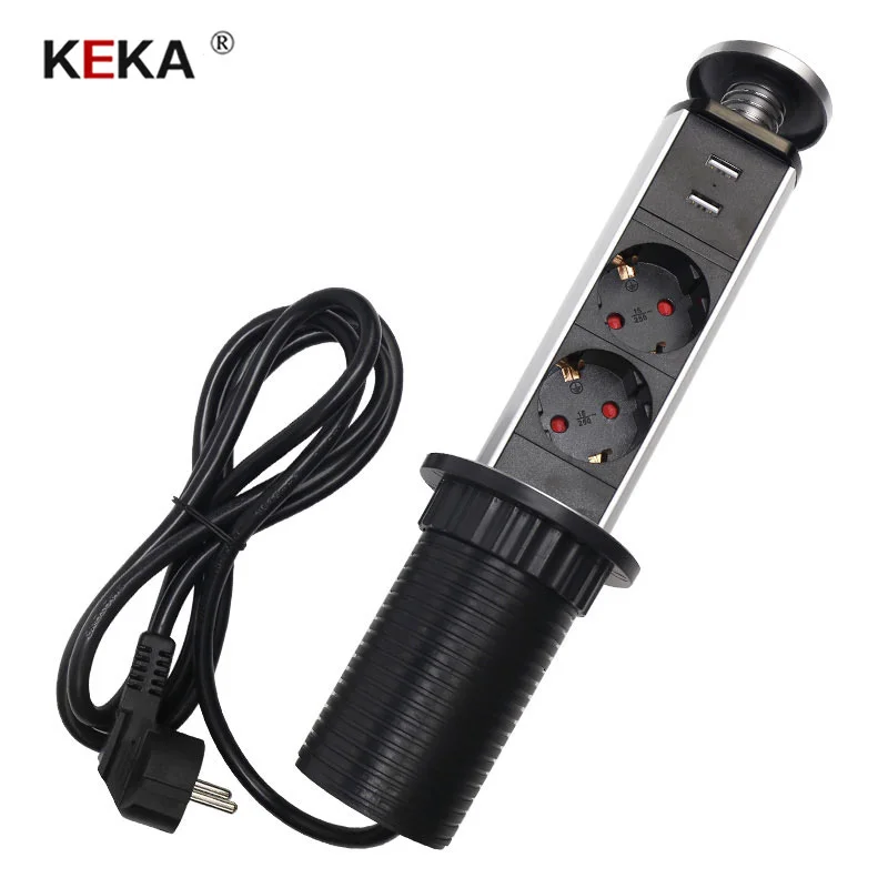 KEKA EU Plug socket 2 power sockets Kitchen Table Electrical Socket Power 1 Led+2 charge USB Alumin